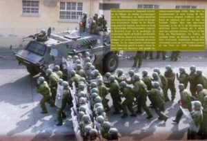 Die Militarisierung der Außen- und der Innenpolitik sind zwei Seiten einer Kriegsmedaille. Während die Bundeswehr sich immer neue Einsatzgebiete außerhalb der Bundesrepublik ersch(l)ießt, wird auch die Militarisierung im Innern immer weiter vorangetrieben: